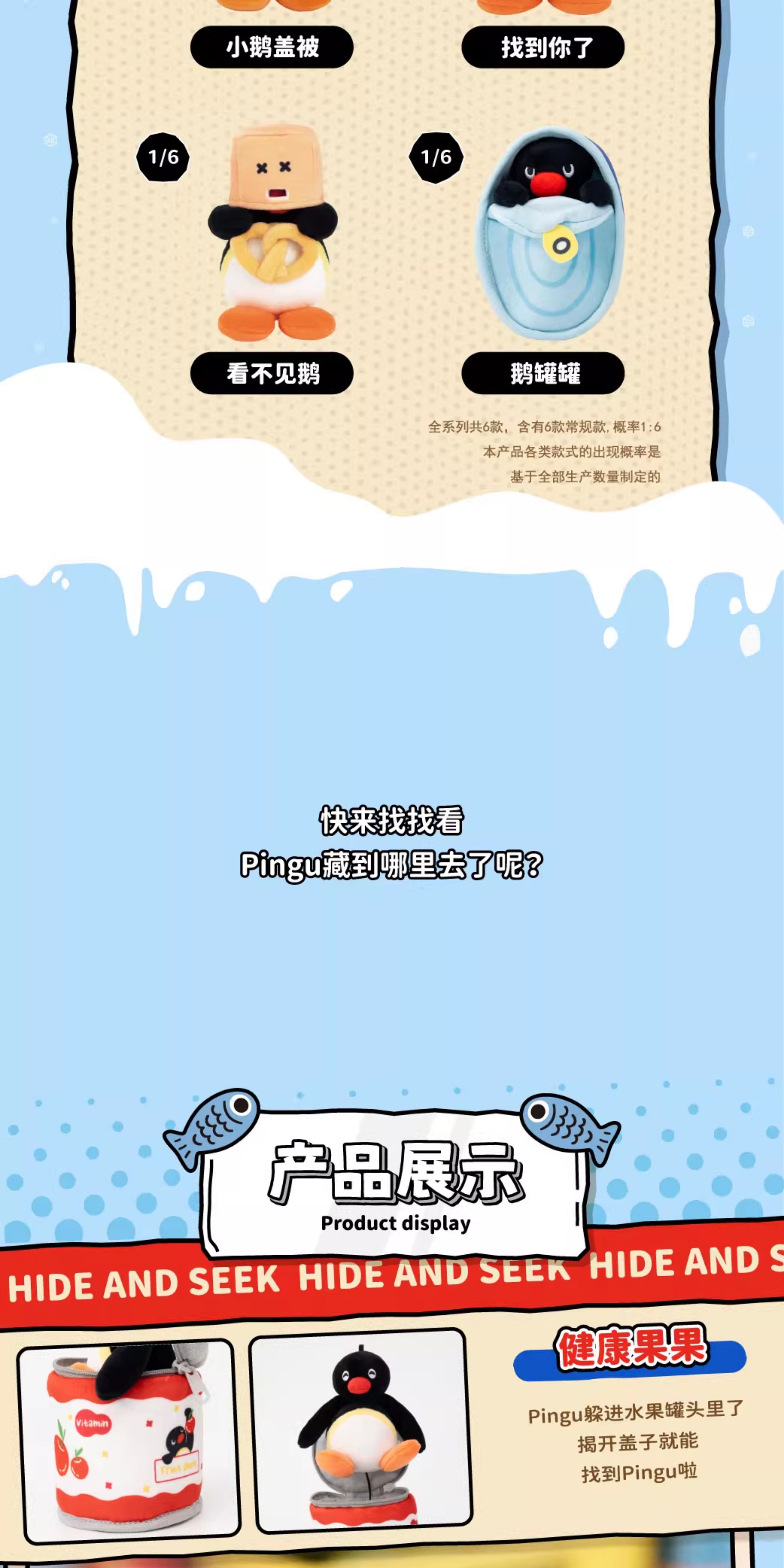 1088. Pingu Hide and Seek Series Plush Blind Box