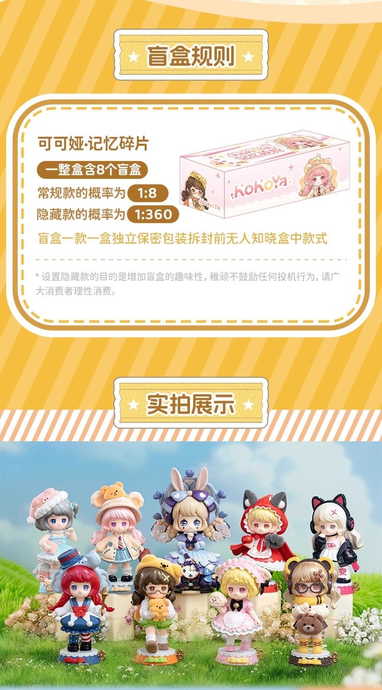Please note that blind boxes may have manufacturing defects such as uneven dyeing, minor scratches, paint loss, or air bubbles. These imperfections are a normal part of the production process, and we appreciate your understanding.