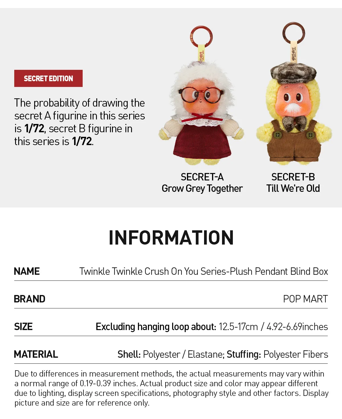 Please note that blind boxes may have manufacturing defects such as uneven dyeing, minor scratches, paint loss, or air bubbles. These imperfections are a normal part of the production process, and we appreciate your understanding.