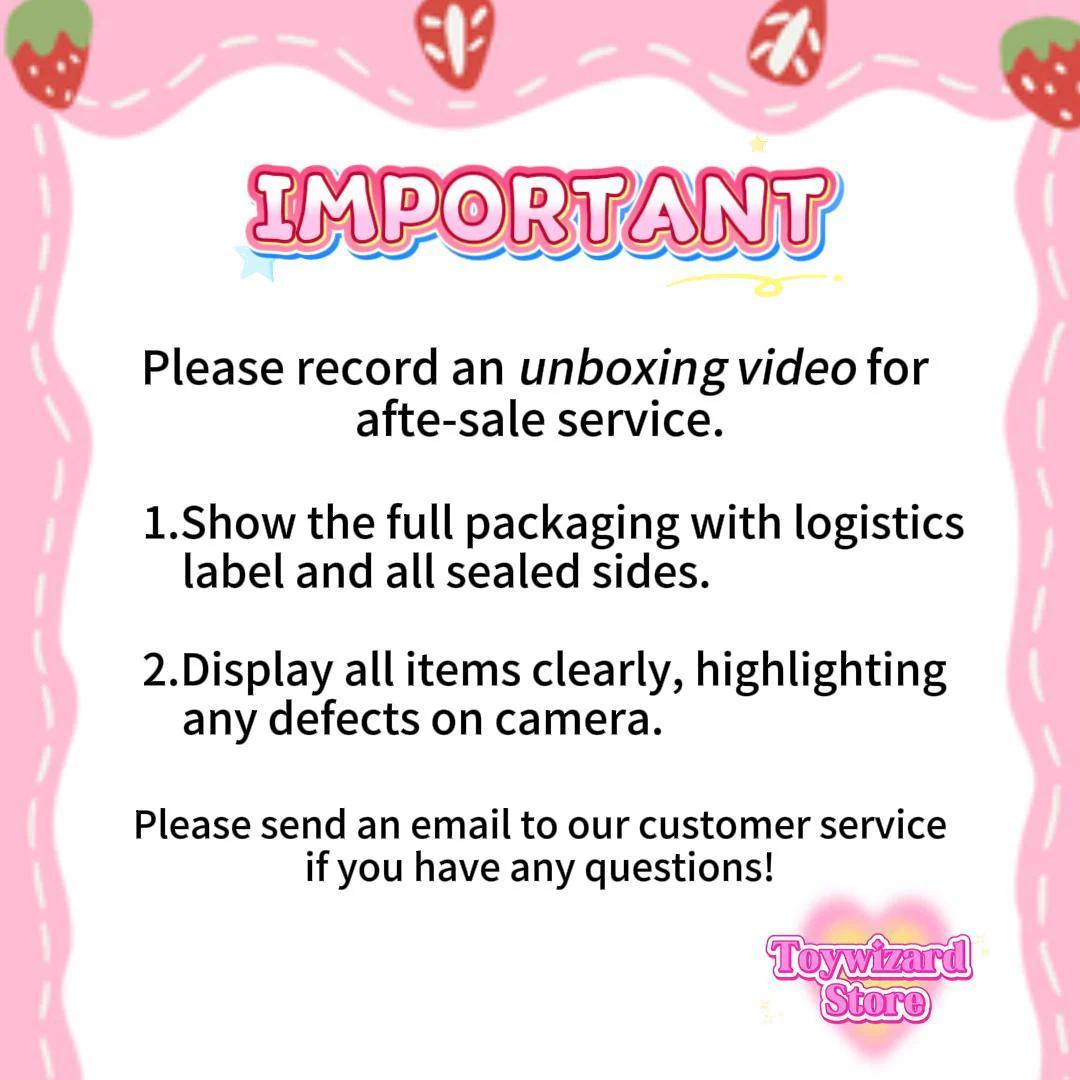 4. If your package has INCORRECT, DAMAGED, OR MISSING ITEMS issue, please contact us(toywizardctu@outlook.com) within 5 days from the receipt of our item, any request after 5 days will not be honored. Please make sure to contact us via email (toywizardctu@outlook.com)Please include your order number, livestream screenshot, and unboxing video for any after-sale service.